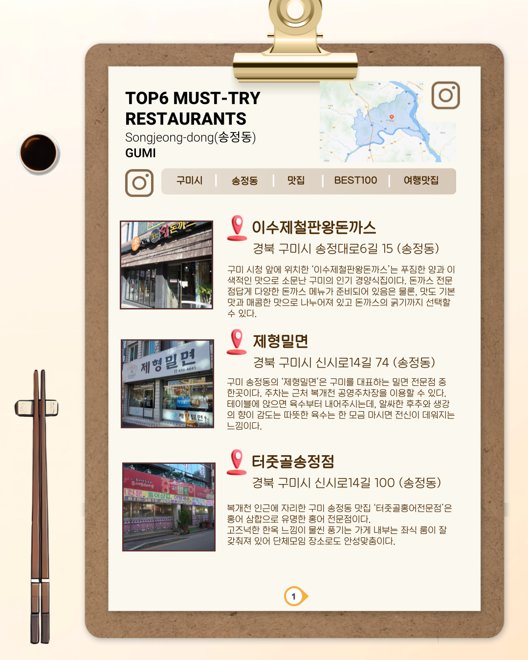 2025 구미아시아육상경기선수권대회 맛집 정복! 송정동 3탄! 👏작성자:관리자조회수:195등록일:2025. 04. 29. 구미아시아육상경기선수권대회 송정동 맛집 2탄에 이어 3탄으로 돌아왔습니다 📣경기도 보고! 맛집도 가고! 송정동에서 입도 눈도 제대로 호강하세요! 인스타그램첨부파일목록