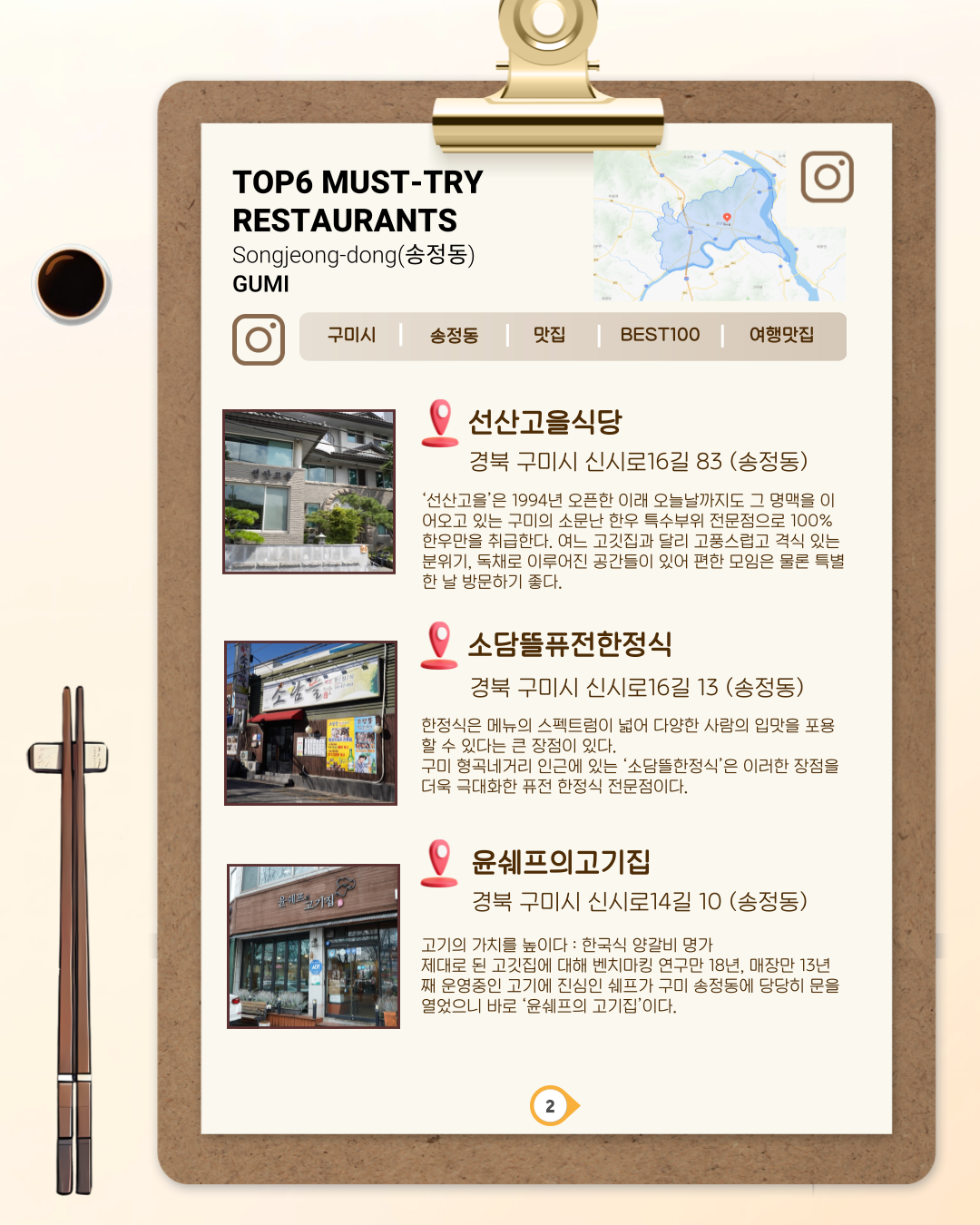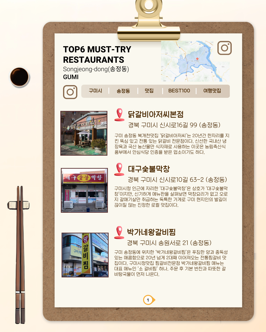2025 구미아시아육상경기선수권대회 맛집 정복! 송정동 2탄! 👏작성자:관리자조회수:170등록일:2025. 04. 29. 경기 관람도 하고, 맛집 탐방도 제대로! 선수들도 반할 구미 송정동 맛집 TOP6을 소개합니다. 📣경기도 보고! 맛집도 가고! 송정동에서 입도 눈도 제대로 호강하세요! 인스타그램첨부파일목록